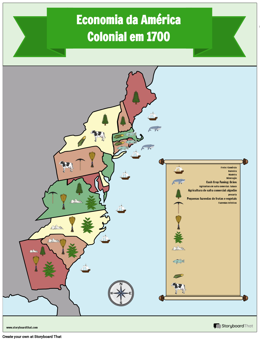 Mapa da Economia de 13 Colônias Storyboard por pt examples