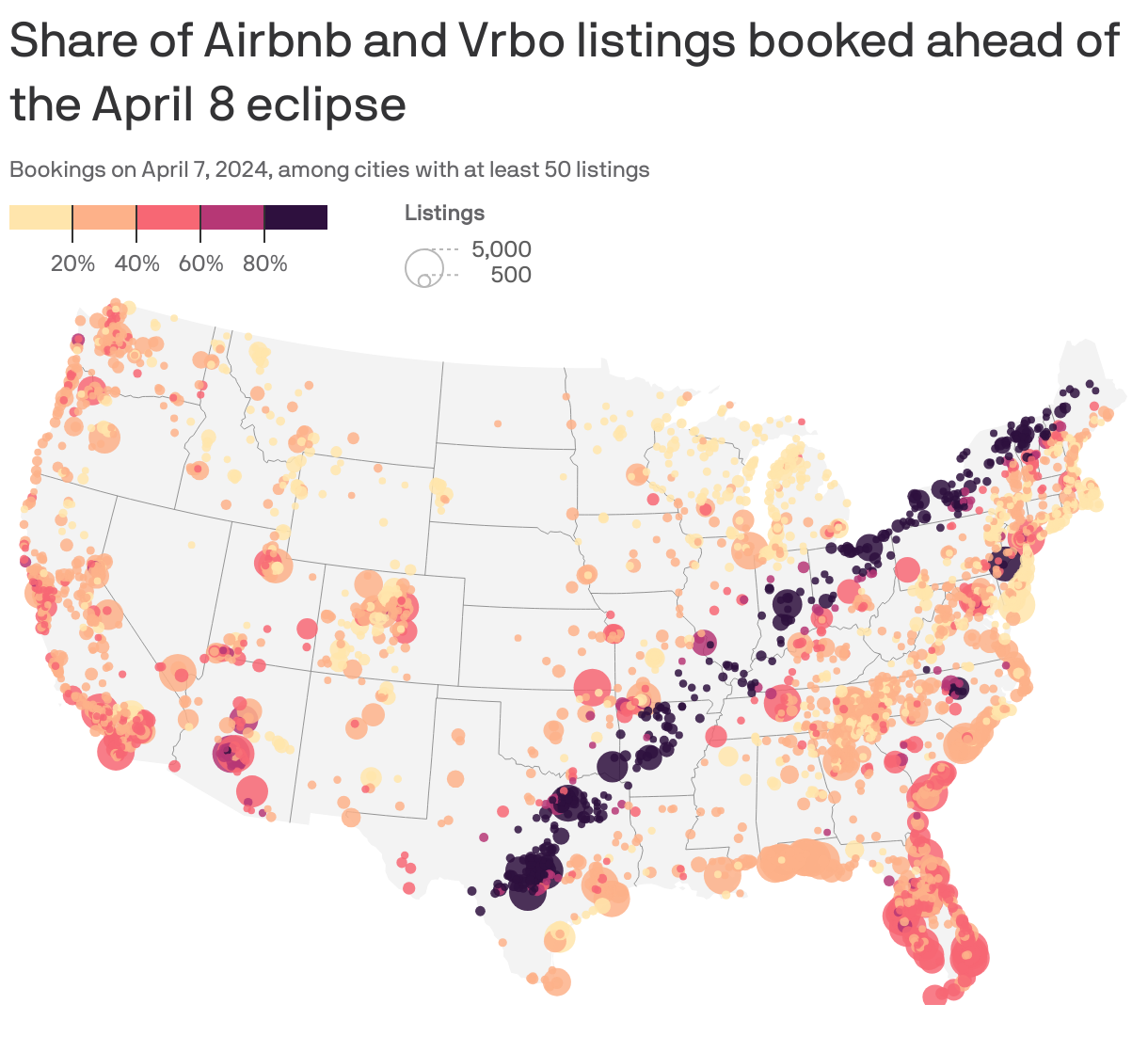 2024 Eclipse: Airbnb bookings perfectly paint the path of totality