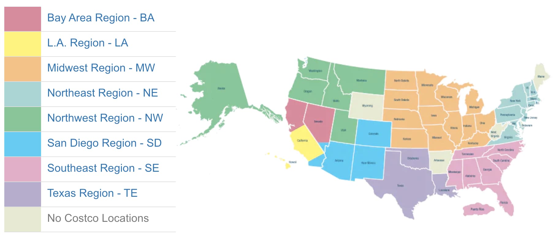 Costco Regional Map The Regions of Costco : r/Costco: Costco Wholesale is installing membership scanners at the entrances of all of its locations to discourage non-members from shopping at the stores. Soon, instead of flashing their cards at . She previously helmed The Takeout, a Midwest-based food website. There are many reasons why people are so devoted to their Costco memberships—bargain prices, surprisingly good booze sold under .