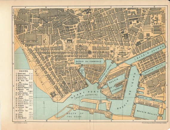 Old map of Le Havre in 1913. Buy vintage map replica poster print