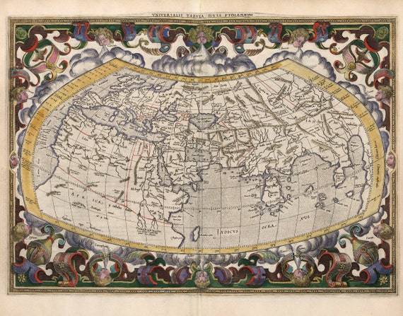 Historical World Map in Color, 17th Century, Fine Art Reproduction