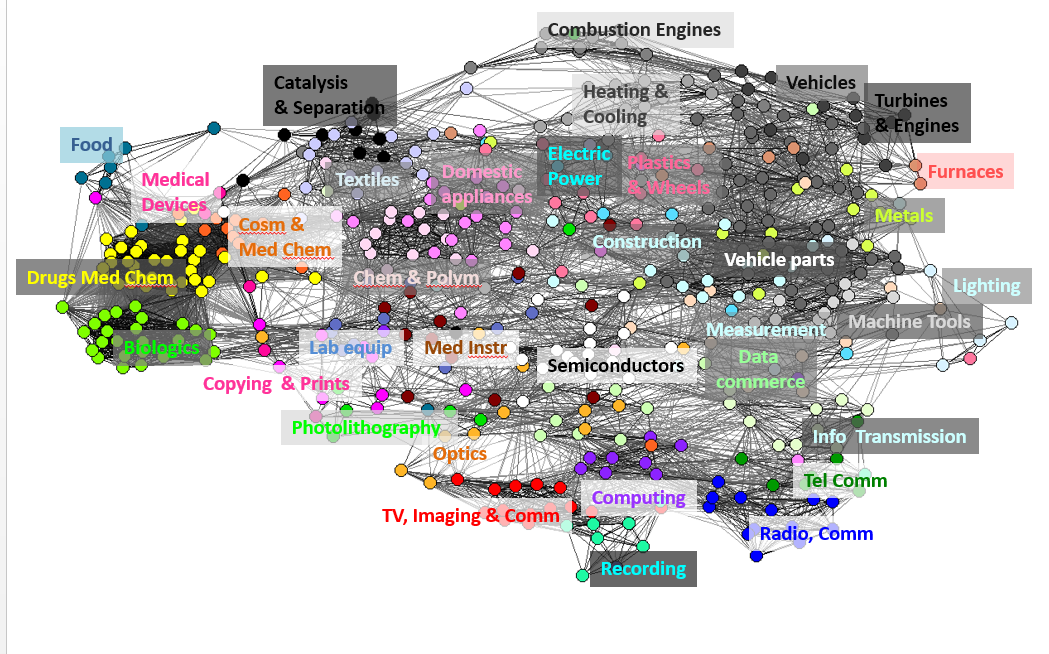 The technological map of 44 technological domains based on the